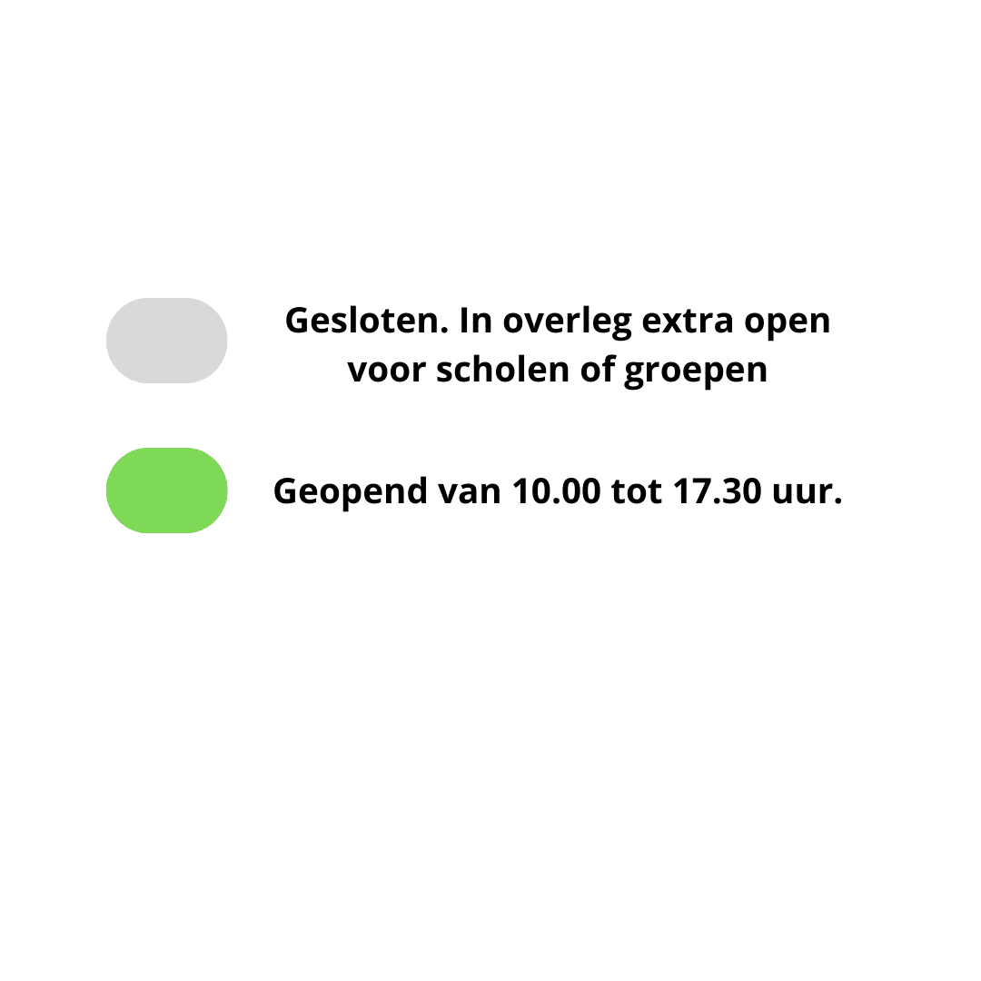 Hieronder zie je de openingstijden voor heel 2026 per maand met legenda en toelichting. We verwelkomen jullie graag op onze speelboerderij! Klik op entree voor onze actuele entreeprijzen.